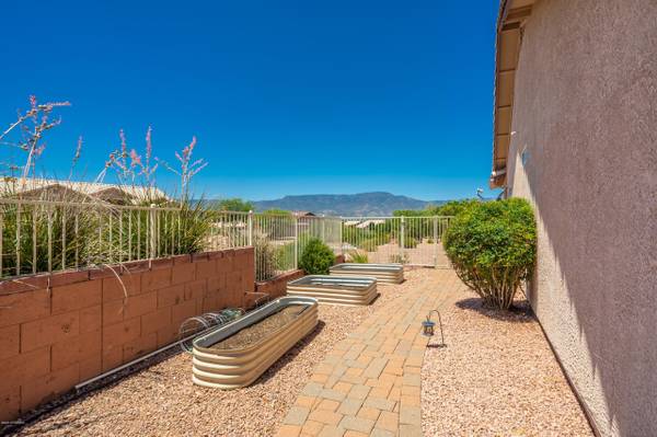 Beautiful two bedroom home on an elevated lot with Mingus Mountain Views from your private gated courtyard. Spectacular kitchen features an abundance of counter & cabinet space, center island, gas range, engineered stone, decorative backsplash, breakfast bar & nook open to great room that includes built in entertainment center with gas fireplace. Master Suite with bay window, double vanity & custom closet. Escape to your backyard oasis with covered back patio where mature trees and landscaping offer plenty of shade throughout the day and evening. Oversized 2 Car Garage with finished floors, sink, cabinets and attic access.