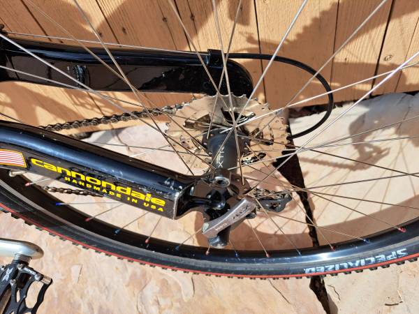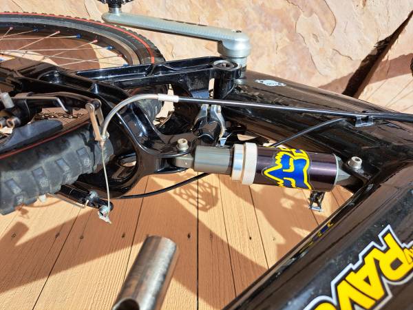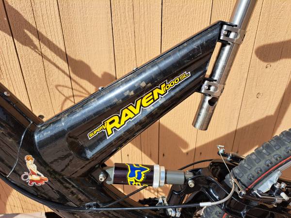 Cannondale Super V Raven II in excellent condition. Original owner. Coda Magic M900 crankset, Fatty Headshok, X-Pedo Face Off pedals, XTR shifters, XTR rear hub, White Industries front hub, Synchros custom Ti seatpost, Selle Flite Ti saddle, Avid Speed Dial brakes, Magnesium pads, XTR rear derailleur, XTR rear hub, Titanium spokes, XT front derailleur, Klein Carbon 90g bars, spare parts include Fatty Headshok, XT front derailleur, new set of magnesium brake pads, Cdale stem, Headshok boot, 28t chainring and more. Very light bike. $650obo. Also available (negotiable).... Almost new Ultra Fatty Headshok.