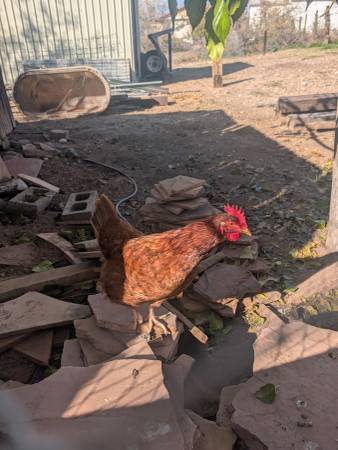 One beautiful protective rooster who is not mean and loves his ladies, sold as a set they must go together