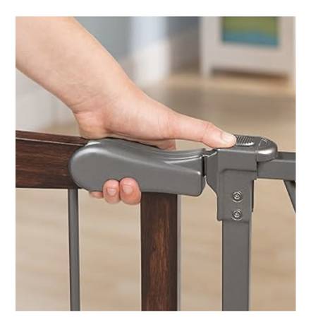 DUAL LOCKING SYSTEM: The dual locking system provides peace of mind, so you know your baby gate is securely locked every time; Plus, the comfort grip handle makes it easy to open and close the door with one hand