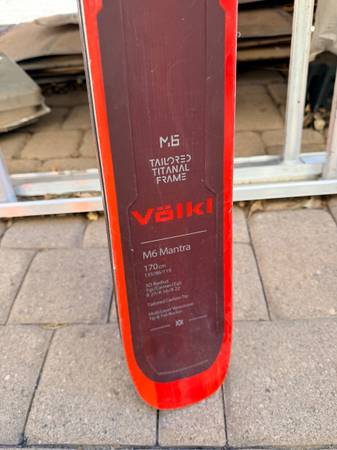 One pair Volkl M6 Mantra 170cm with Marker Griffon Bindings $450